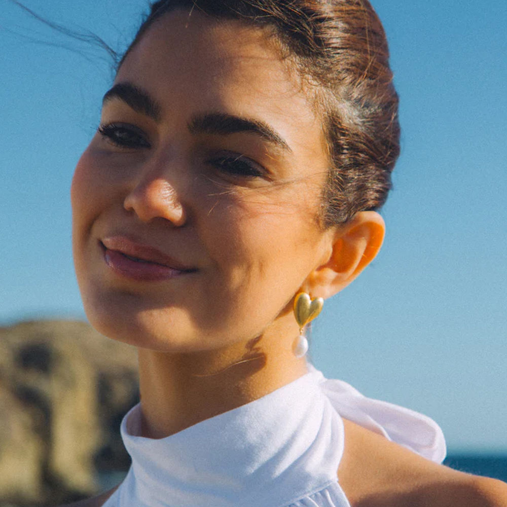 These graceful huggie earrings combine the charm of a delicate heart with the elegance of a freshwater pearl. Perfect for women who love dainty yet classy jewelry that transitions seamlessly from day to night.