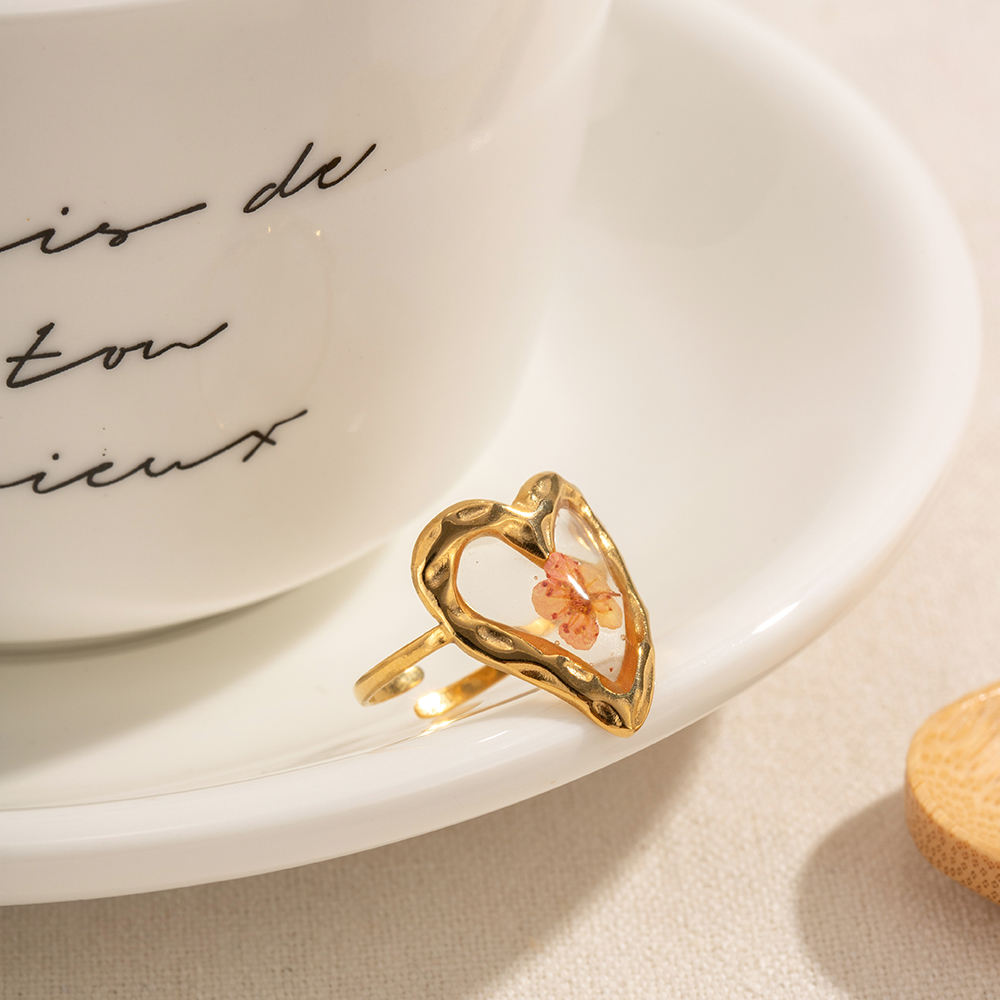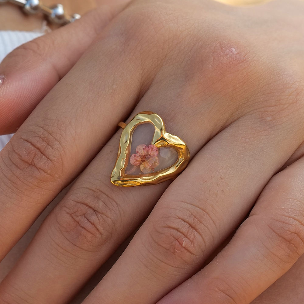 This exquisite hollow heart ring encases a real eternal plum flower, combining nature’s charm with modern elegance. Perfect for gifting or adding a delicate, romantic touch to everyday style or special occasions.