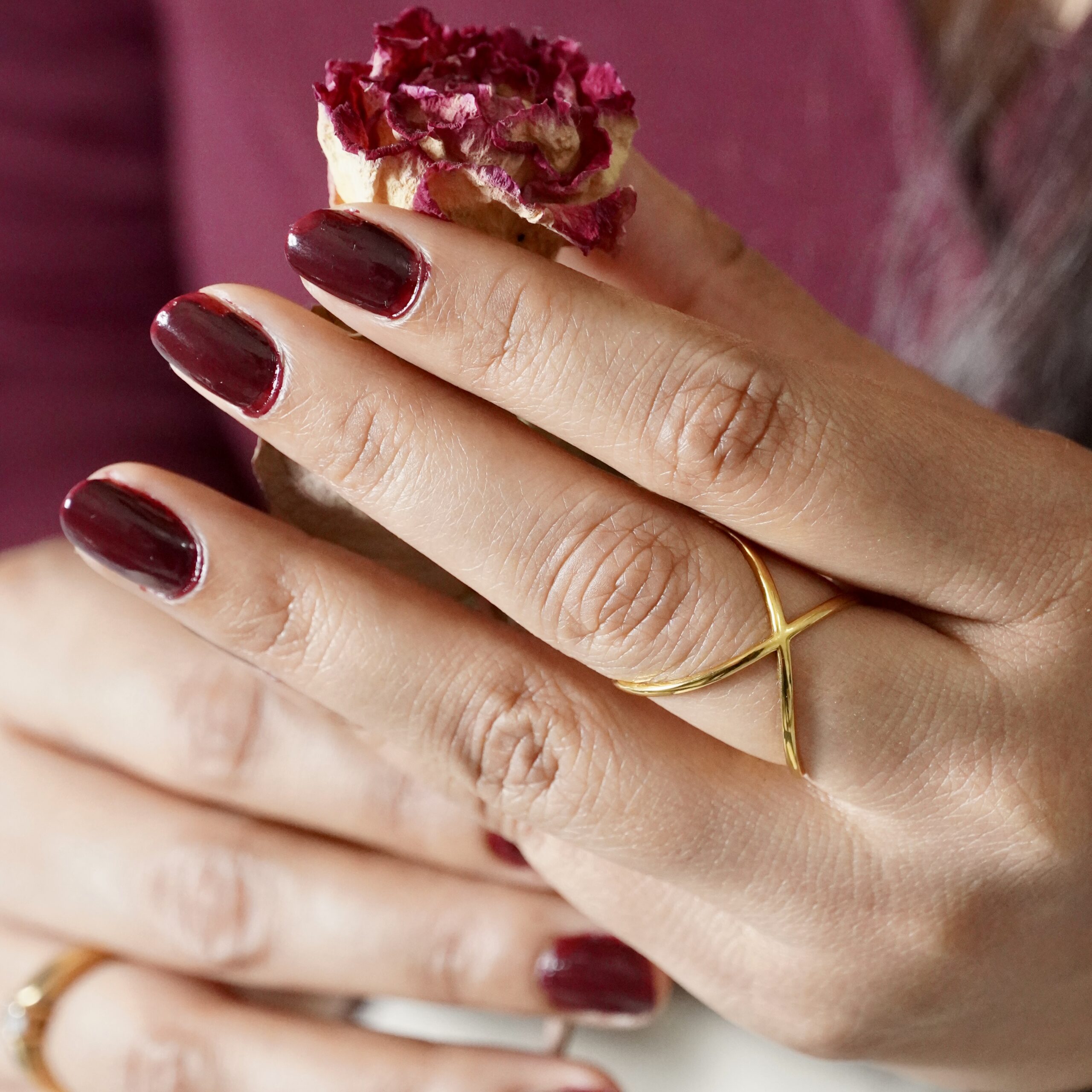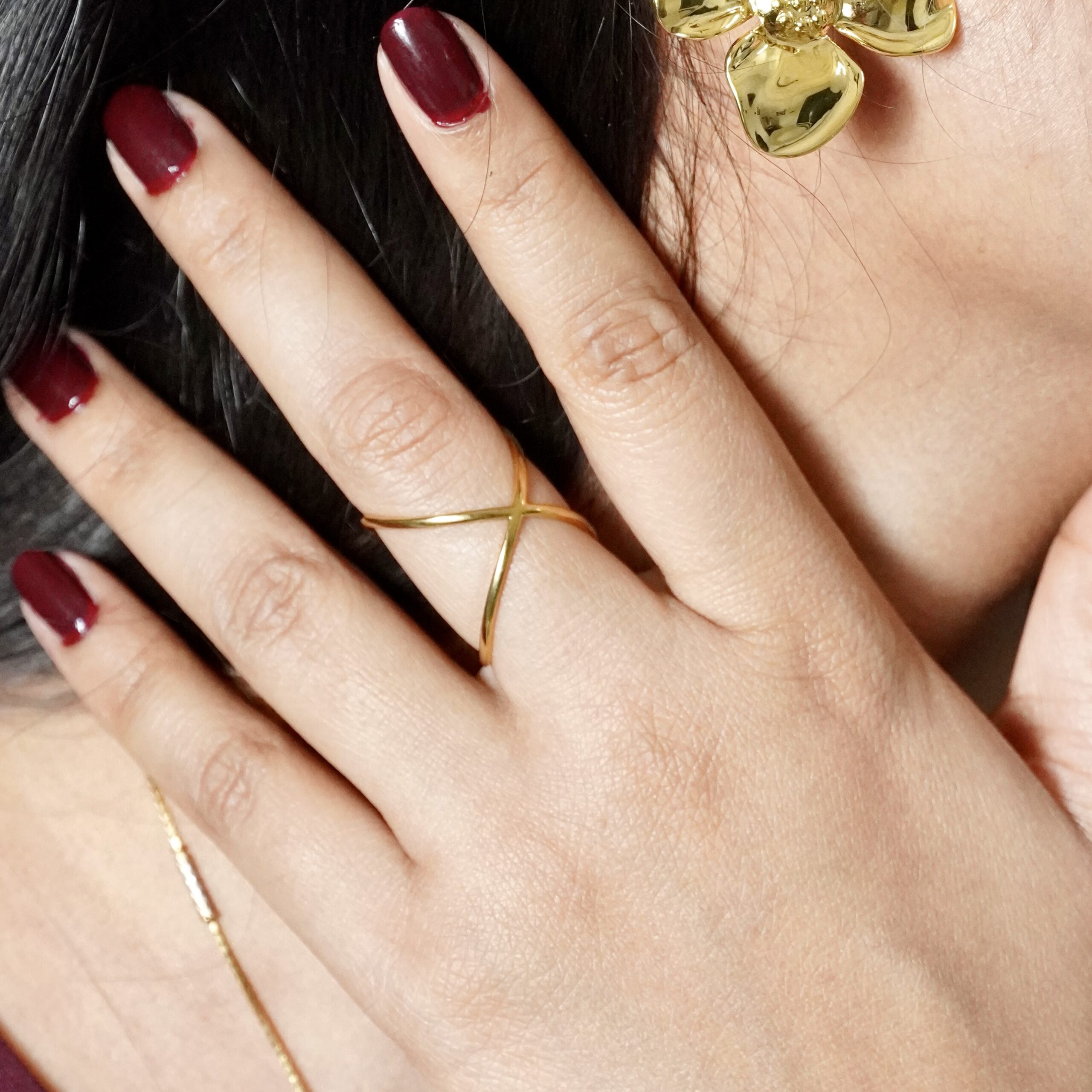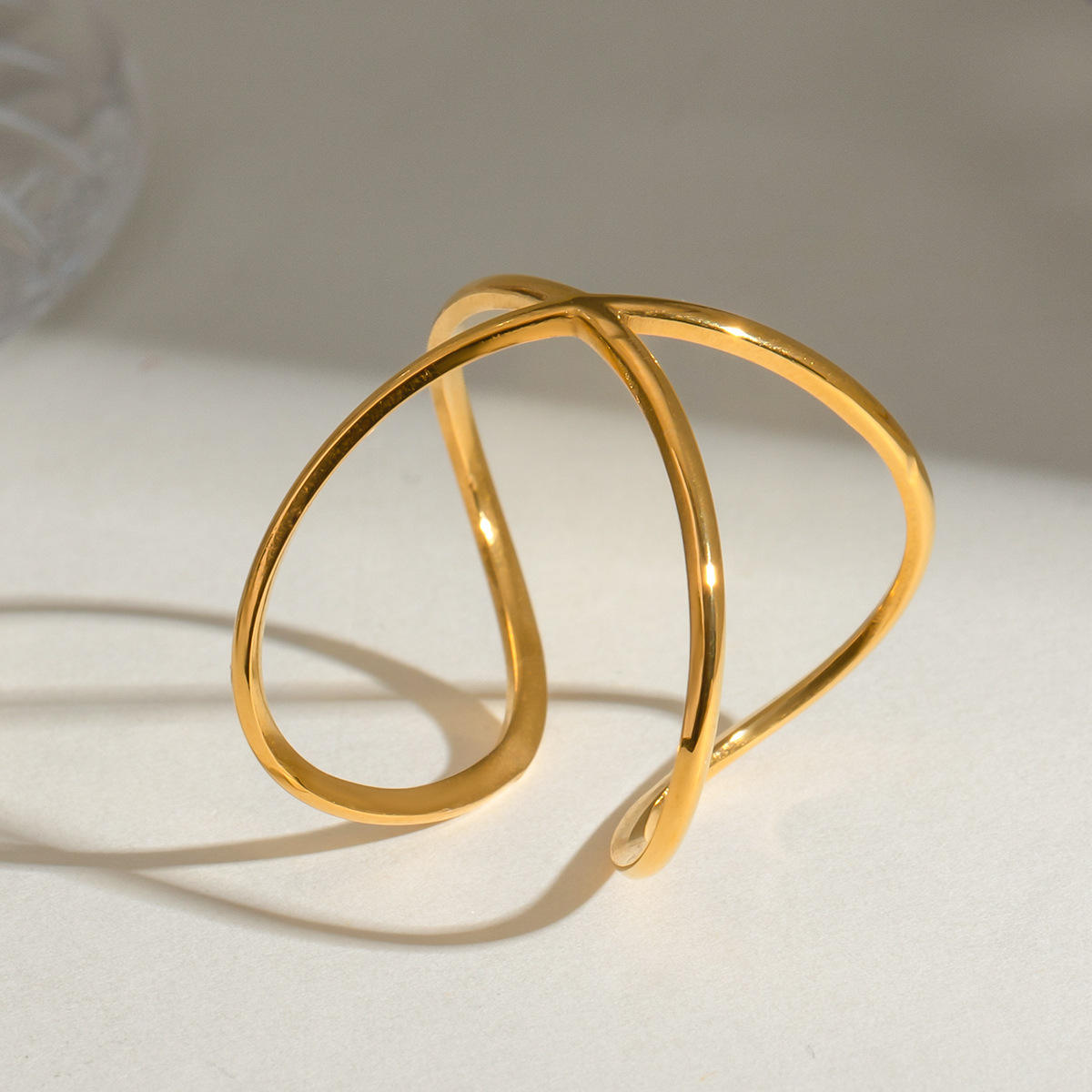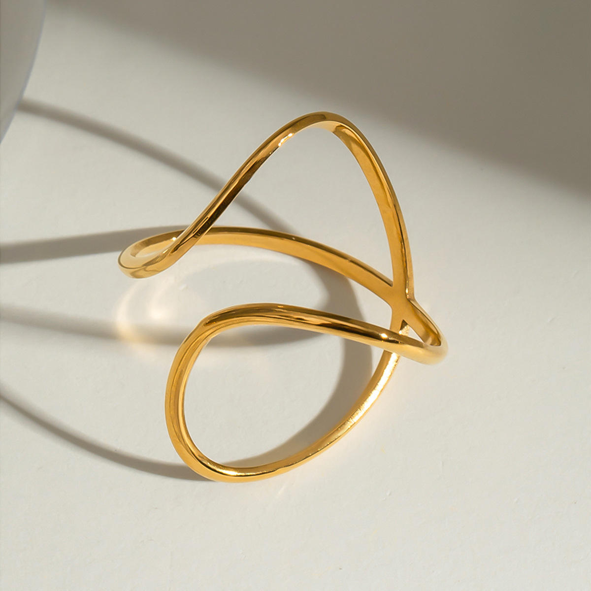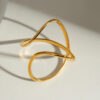 This abstract open ring showcases a contemporary polished line design, perfect for adding subtle elegance and modern flair to daily or evening outfits. Ideal for layering with other rings or wearing solo for a statement.